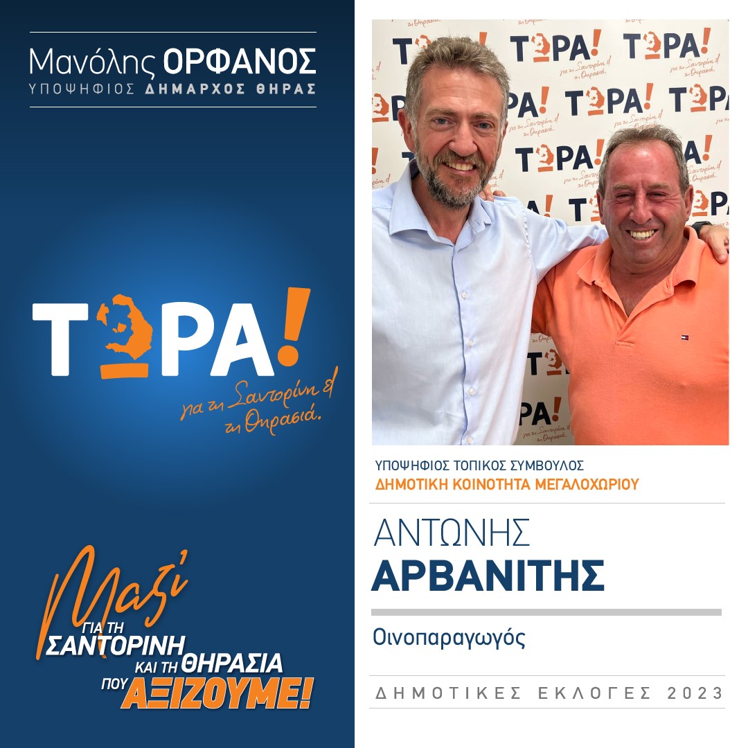 Ανακοίνωση υποψηφιότητας Δημοτικού Συμβούλου κ. Σκοπελίτη Γιώγο στην Δημοτική Ενότητα Θήρας